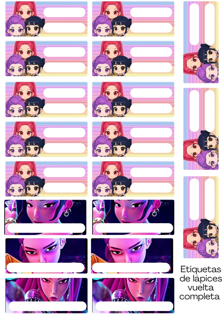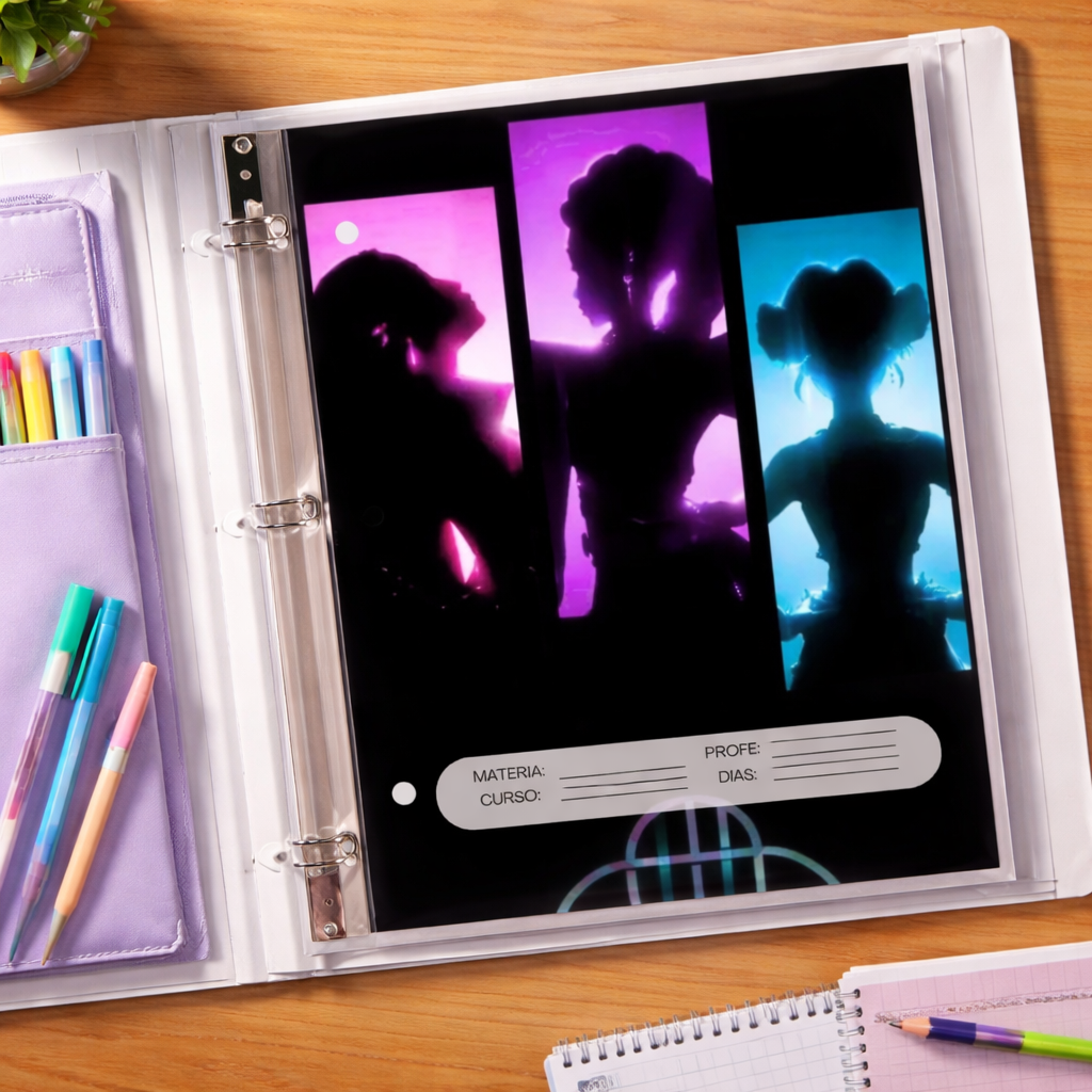 Este pack escolar imprimible incluye todo lo necesario para organizar cuadernos, libros y carpetas, con una estética inspirada en las guerreras del K-pop: fuerte, femenina y con personalidad 🖤✨