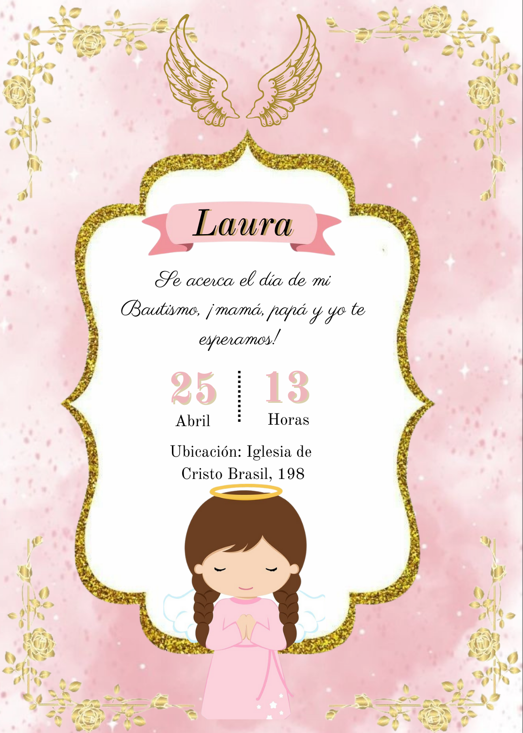 Celebrá la Primera Comunión con una invitación de comunión angel niña elegante y totalmente personalizada, ideal para compartir de forma rápida, práctica y moderna.
