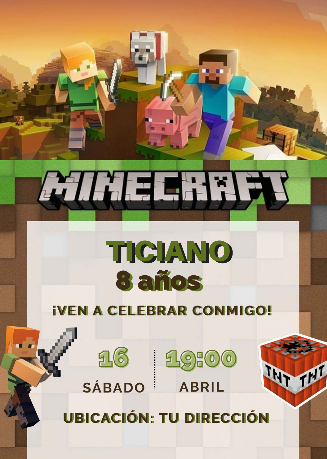 Invitación de Minecraft- Personalizada. y lista para enviar