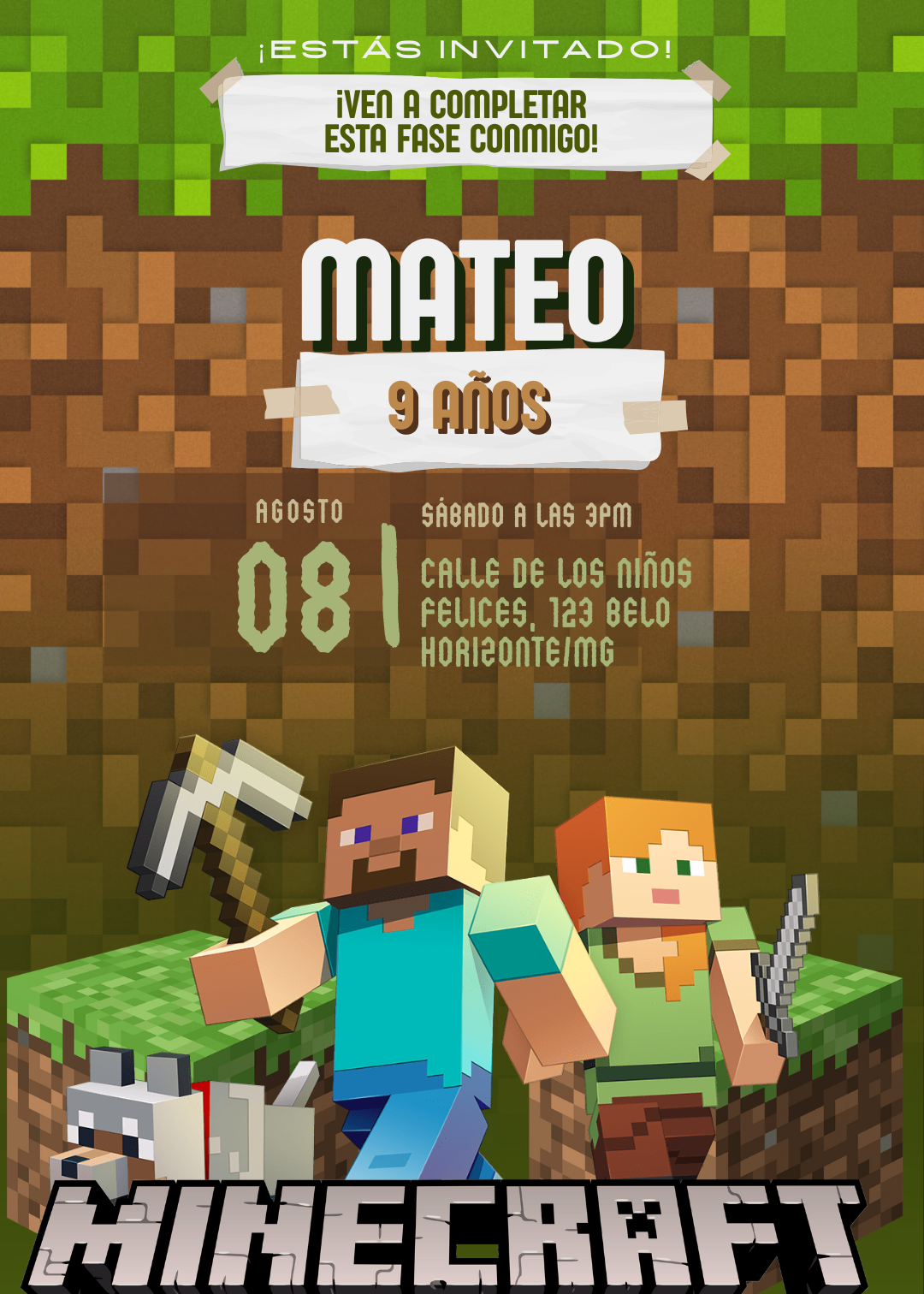Invitación digital Minecraft – Personalizada. y lista para enviar