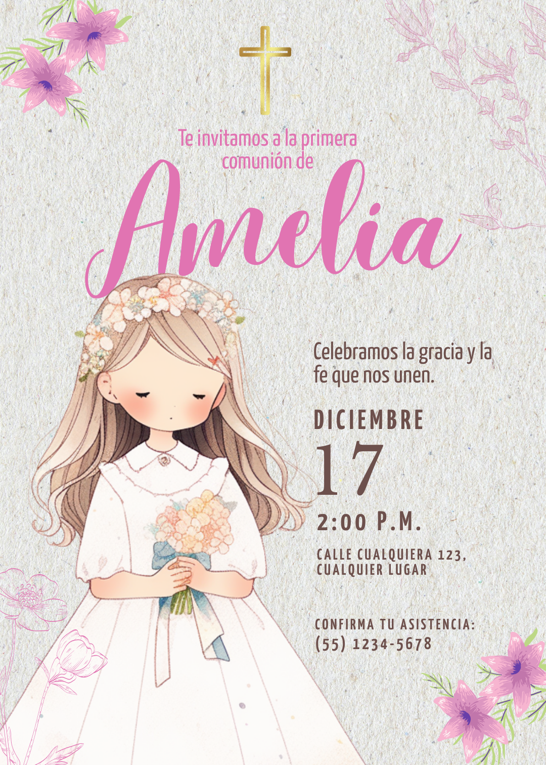 ¿Qué se puede personalizar en esta invitación digital de comunión?