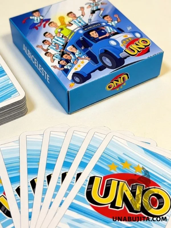 Este no es un UNO tradicional. Es una reinterpretación con identidad propia, donde cada carta especial está adaptada al mundo del fútbol y la Selección Argentina.